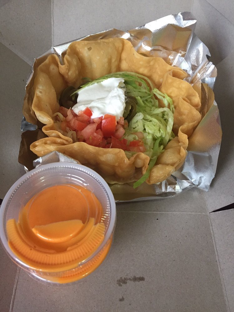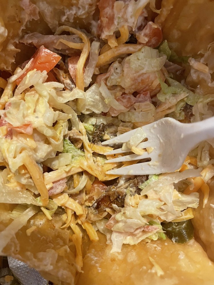 Chicken Tostada Salad, Ground Beef Burrito And French Fries Combination